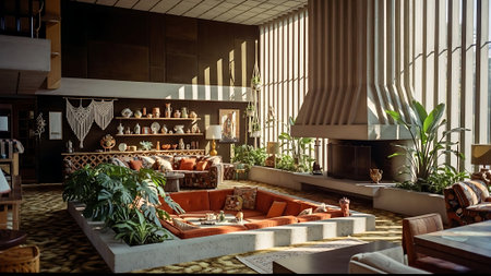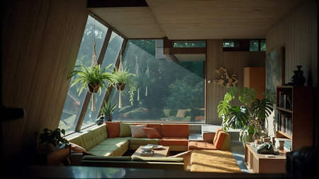 A stylish modern living room interior design with vivid and warm tone colors in the apartment. Generative AI AIG27.