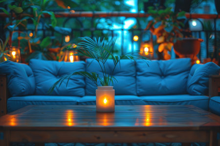 A serene living room scene featuring an open book, coffee cup, and candle on a wooden table, with a cozy couch, plants, and decorative art in the background.