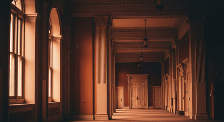An AI generated illustration of a luxurious corridor with grand marble flooring