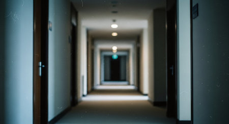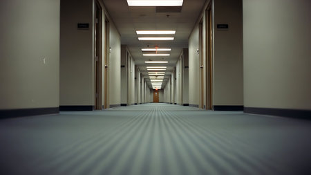 Long Empty Corridor with Soft Lighting and Strong Perspective
