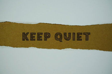 Keep Quiet text on paper craft with white paper torn ripped of horizontal
