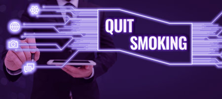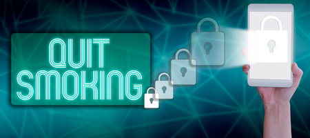 Text sign showing Quit Smoking. Word Written on Discontinuing or stopping the use of tobacco addiction