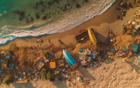 An AI generated illustration of the shoreline of the blue ocean - aerial