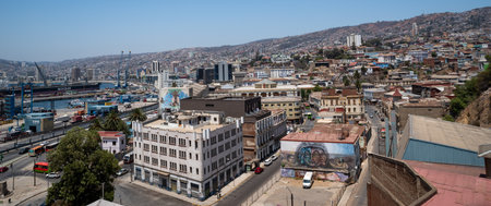 Valparaiso, Chile - 30 Dec 2019: Panoramic view of the center of Valparaiso, Pacific coast, Chile