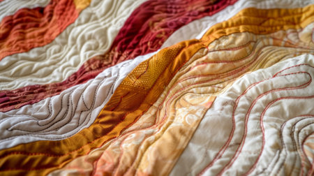 close-up of a quilted pattern on a finished quilt, created with generative ai