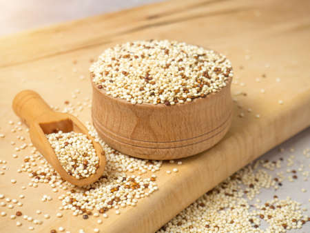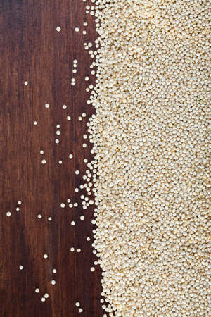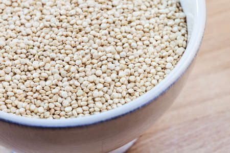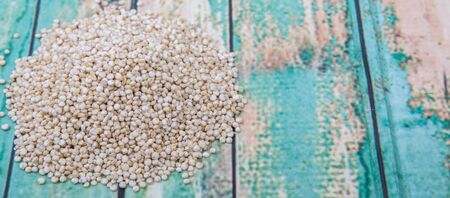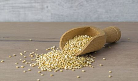 White quinoa grain over wooden background