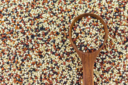 Chenopodium quinoa - Organic quinoa seeds in wooden spoon