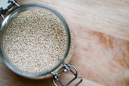 closeup photo of a glass jar with quinoa