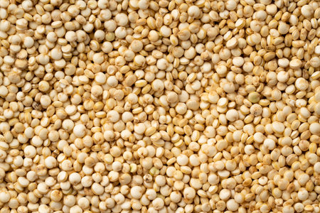 Gluten Free Quinoa Seeds Background with Copyspace. Dry Organic Chenopodium Quinoa, Kinwa or Kinuwa Grains Texture or Pattern Top View
