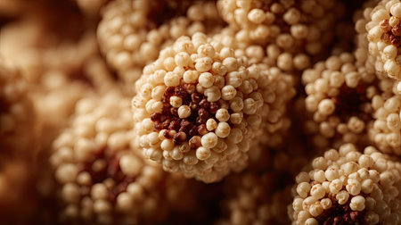 This macro photograph showcases a cluster of delicate seeds with intricate patterns, emphasizing their unique textures amid a soft focus backdrop, perfect for agricultural themes.