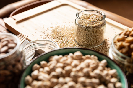 A stunning close-up image showcasing a variety of seeds with intricate textures and earthy colors. This image highlights the organic beauty and nutritional richness of seeds, perfect for food and health-related themes.