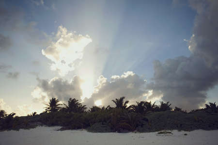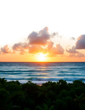 Caribbean Beach Playa Delfines with amazing and beautiful golden sunrise sunset in Cancun Quintana Roo Mexico.