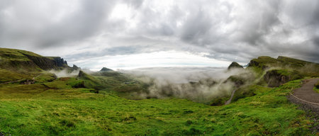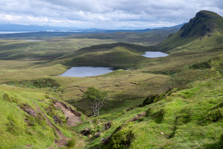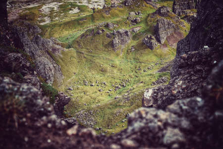 Breathtaking view from Quiraing to valley in Scotland at summer, United Kingdom
