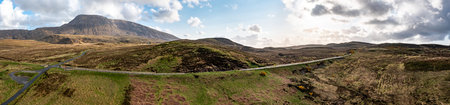 Beautiful autumn panoramic landscape in Scotland, wet weather outside