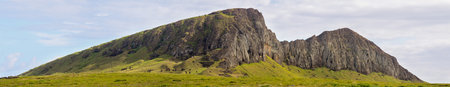 Majestic Rano Raraku Volcano on Easter Island Under Cloudy Sky