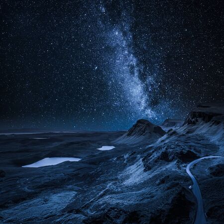 Breathtaking view to milky way over Quiraing at night, Scotland