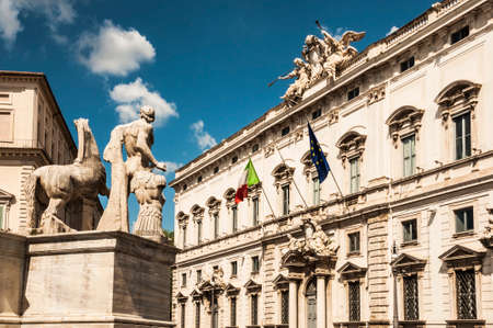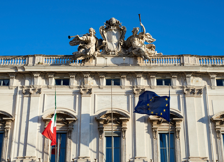 Rome, Italy - October 10, 2020: A sculpture on top of the building of Constitutional Court of Italy (Palazzo della Consulta)