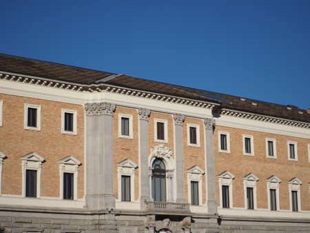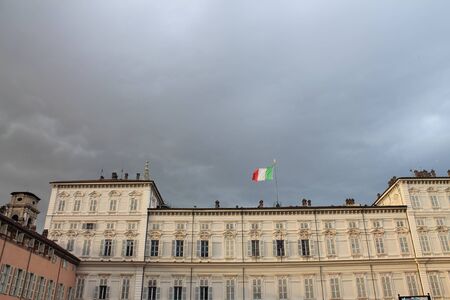 Facade and entrance of the Royal Palace (Palazzo Reale), XVII - XVII century, in Turin (Torino) Piemonte, Italy. UNESCO world heritage site