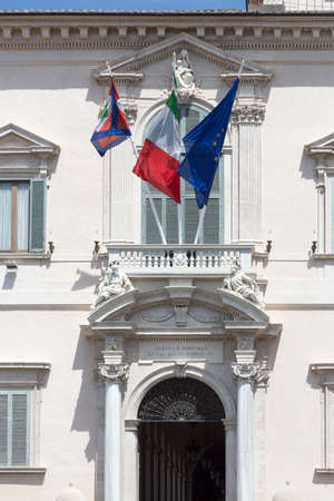 Rome, RM, Italy - March 3, 2019: Quirinale Palace Headquarter of President of Italian Republic with flags