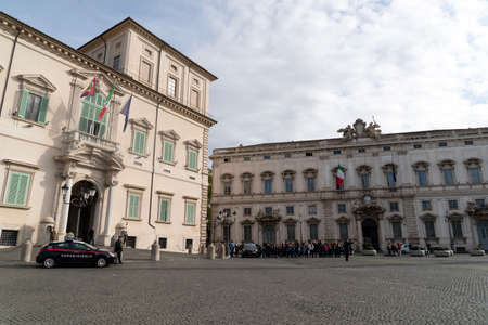 Rome, Italy - December 31, 2016: Quirinal Palace with the police guarding in Rome, Italy. Of Renaissance architecture, it is one of the three official residences of the President of the Italian Republic