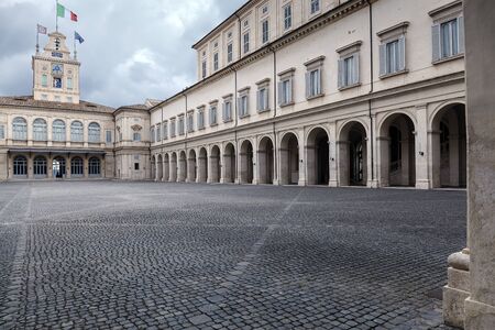 Rome, Italy - May 19, 2016: The inner courtyard of the palace Quirinale, corporate headquarters and residence of the President of the Republic.