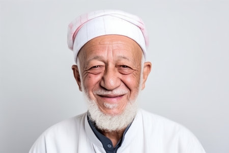 Portrait of mature arabic man with long white beard and moustache outdoor