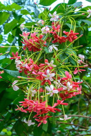 Quisqualis indica or Chinese honeysuckle flowers full blooming in sunny day