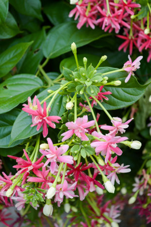 Rangoon Creeper, Chinese honey Suckle or Combretum indicum plant or pink flower in the garden