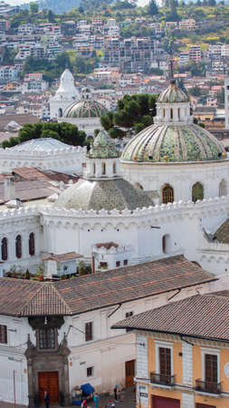 aerial view Basilica church and rooftops in Quito, Ecuador