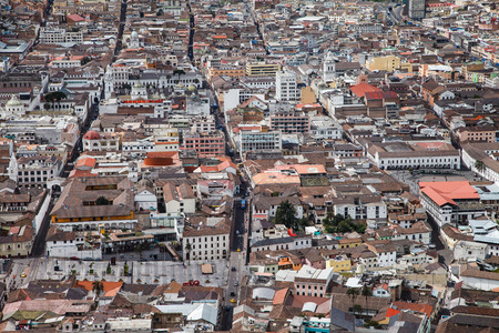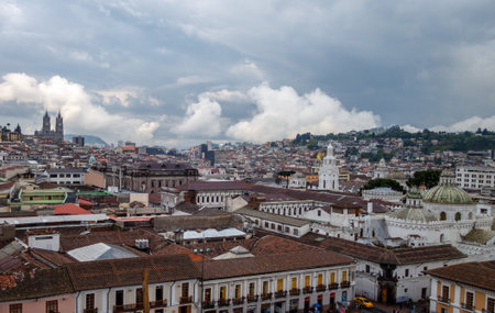 Image of Quito, with its beautiful streets, rooftops and colonial style. Quito was the first city to be named Cultural heritage of Humanity by the UNESCO.
