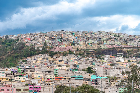 Aerial photo of hillside urban constructions in Quito, Ecuador