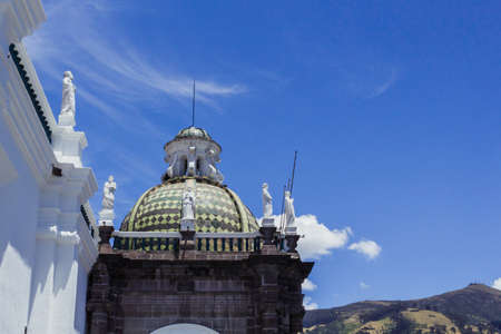 QUITO, ECUADOR, OCTOBER - 2015 - Low angle view of one the dome of the metropolitan cathedral at the historic center of Quito in Ecuador.
