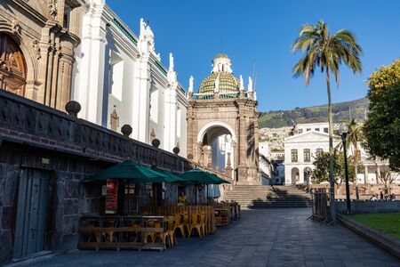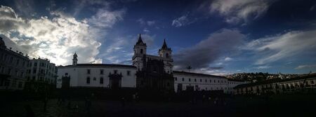 Quito, Ecuador. Central Plaza Catholic cathedral basilica San Francisco church in historic center.