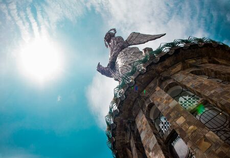 QUITO, ECUADOR- MARCH 23, 2017: Monument to the Virgin Mary is located on top of El Panecillo and is visible from most of the city of Quito, Ecuador, from under view