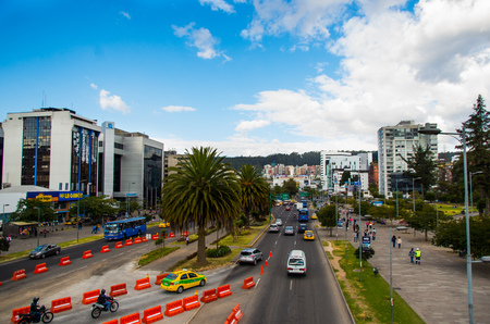 Quito, Pichincha Ecuador - August 10 2017: View of the Naciones Unidas avenue north part of the city of Quito with new buildings in the background