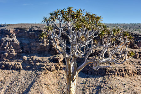 Quiver Tree and the Fish River Canyon in Namibia, Africa. It is the largest canyon in Africa.