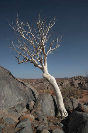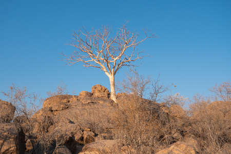 White, Leafless Large Leaved Star Chestnut Tree Growing on Rocks in Namibia, Africa