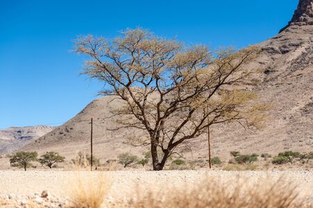 A tree on a rocky slope in the Kuiseb Canyon in Namibia