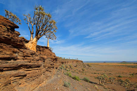 Landscape of a Quiver Tree with blue sky and thin clouds in the dry desert