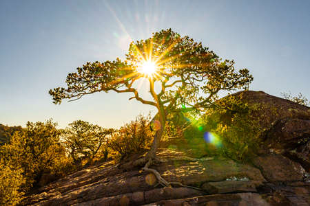Large Sun Burst Through Tree on Lost Mine Trail in Big bend National Park