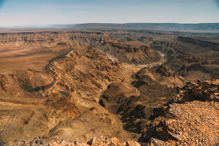 rocky terrain of Fish River Canyon in Namibia by dry season