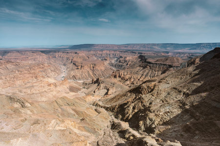 Panoramic view of the Fish River Canyon in Namibia in Africa.