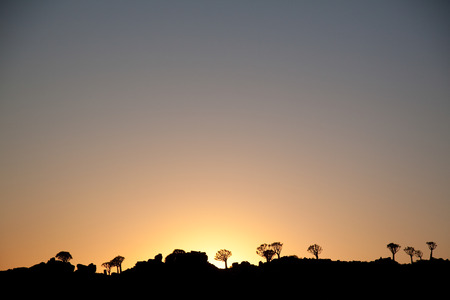 Sunset at quiver tree forrest in Namibia