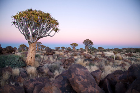 Quiver Tree Forest outside of Keetmanshoop, Namibia at dawn.