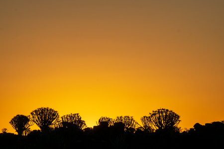 Silhouette view of Quiver Trees Forest with beautiful sky sunset twilight sky scene in Keetmanshoop, Namibia.