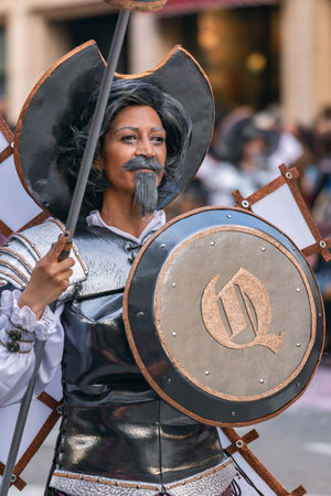 Traditional carnival in a Spanish town Palamos in Catalonia. Many people in costume and interesting make-up. 03. 01. 2019 Spain