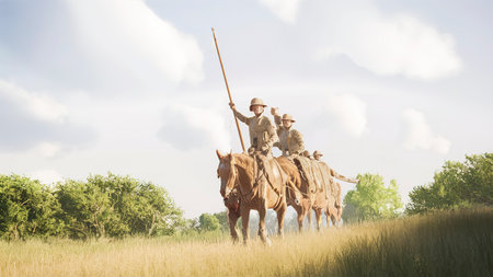 3D rendering of a historical reenactment in the desert of Egypt