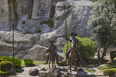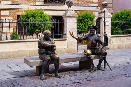 Madrid, Spain, June 22, 2022: Statues of Don Quixote and Sancho Panza in the city of Cervantes.
