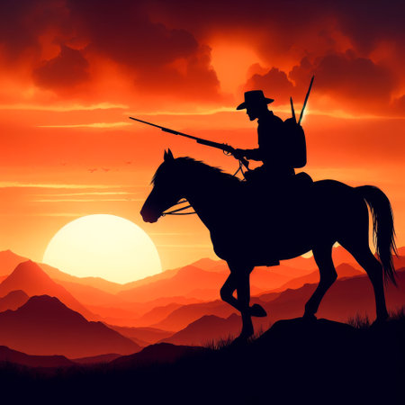 Cowboy riding a horse carrying a gun