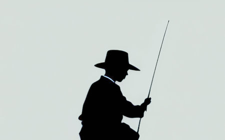 Silhouette of a man in a hat with a fishing rod
